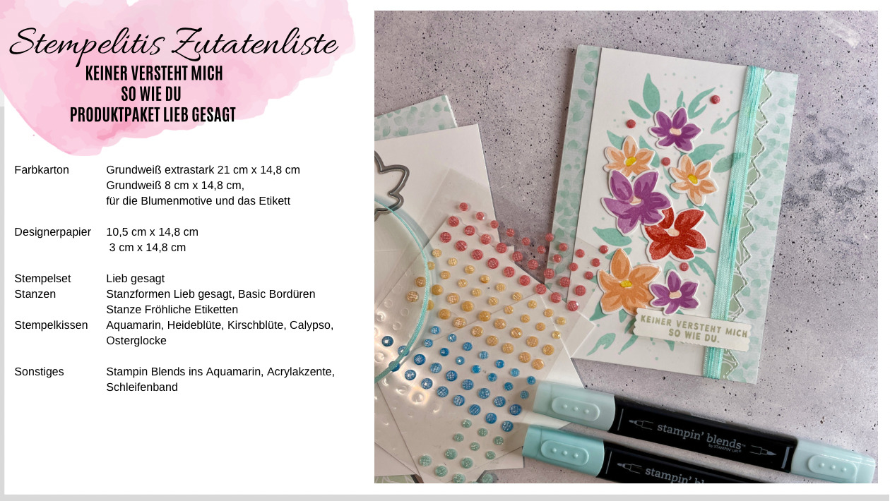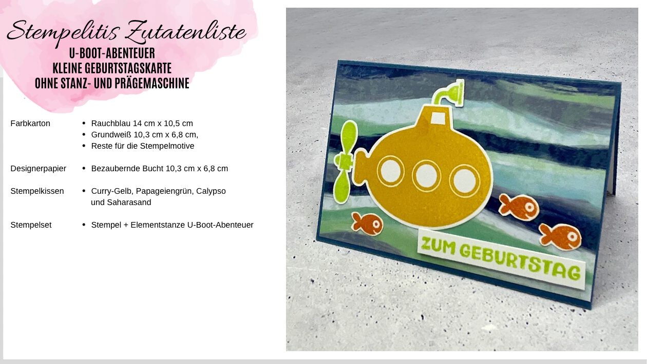 Auf dieser Seite findest du viele Anleitungen für Karten in unterschiedlichen Techniken. Eine genaue Zutatenliste hilft dir, das nötige Material vorzubereiten. Farben und Muster kannst du an deine Wünsche und vorhandenes Papier und Stempel anpassen. Du kannst auch die aufgelisteten Produkte bei mir kaufen, sofern sie noch im Sortiment von Stampin‘ Up! erhältlich sind.