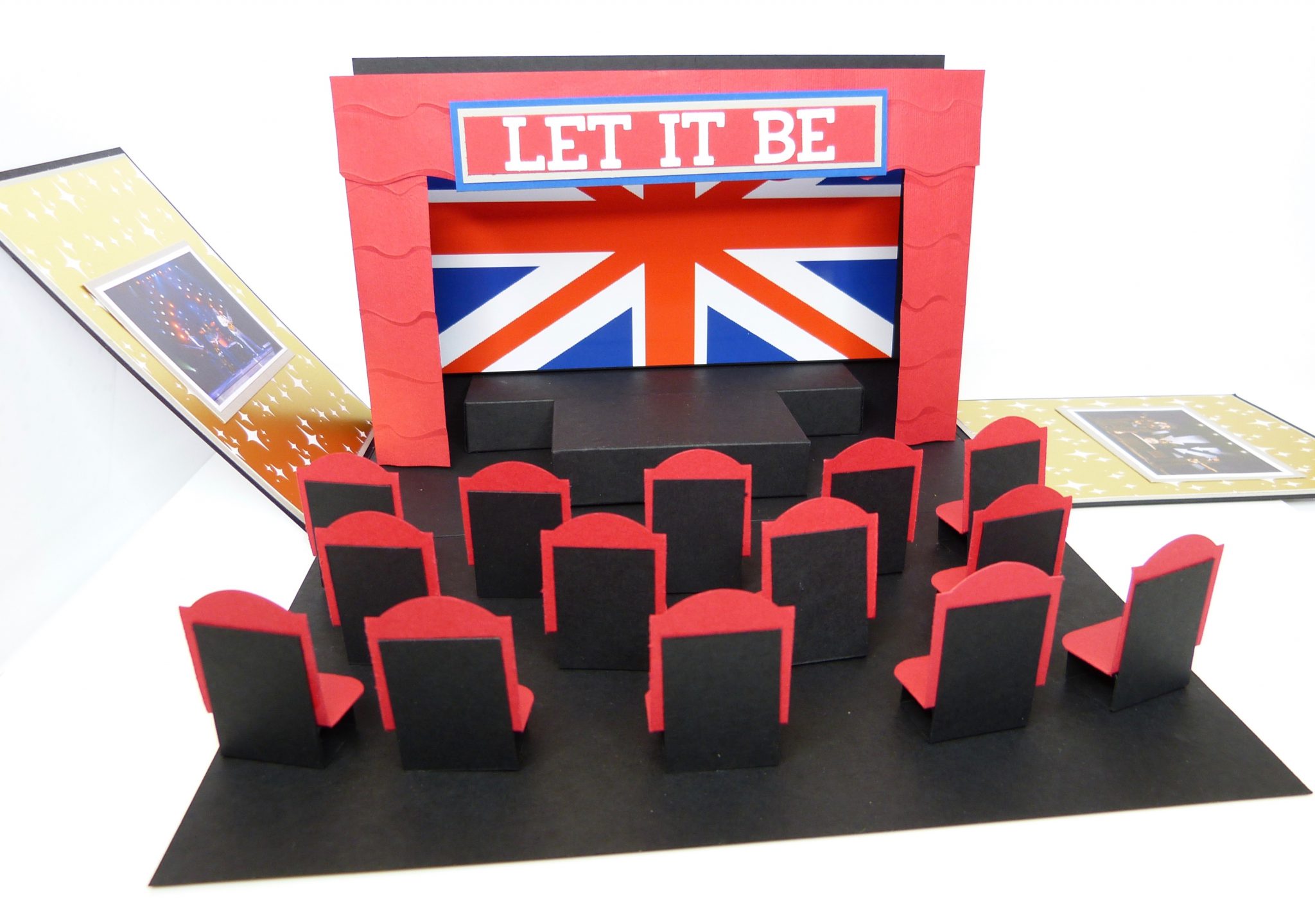 Hinter der Bühnenwand befindet sich ein Fach für die Glückwunschkarte. Etwas knifflig ist die komplette Bühnenkonstruktion und die Bestuhlung. Aber das habe ich inzwischen eine gute Lösung gefunden.