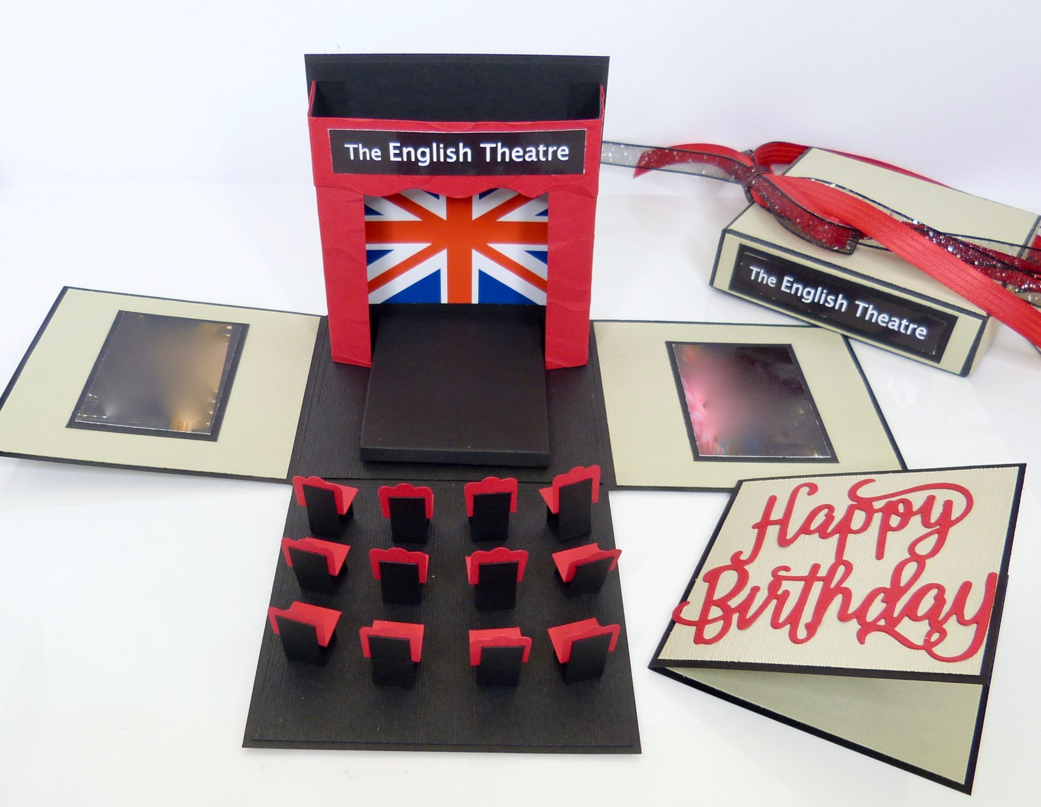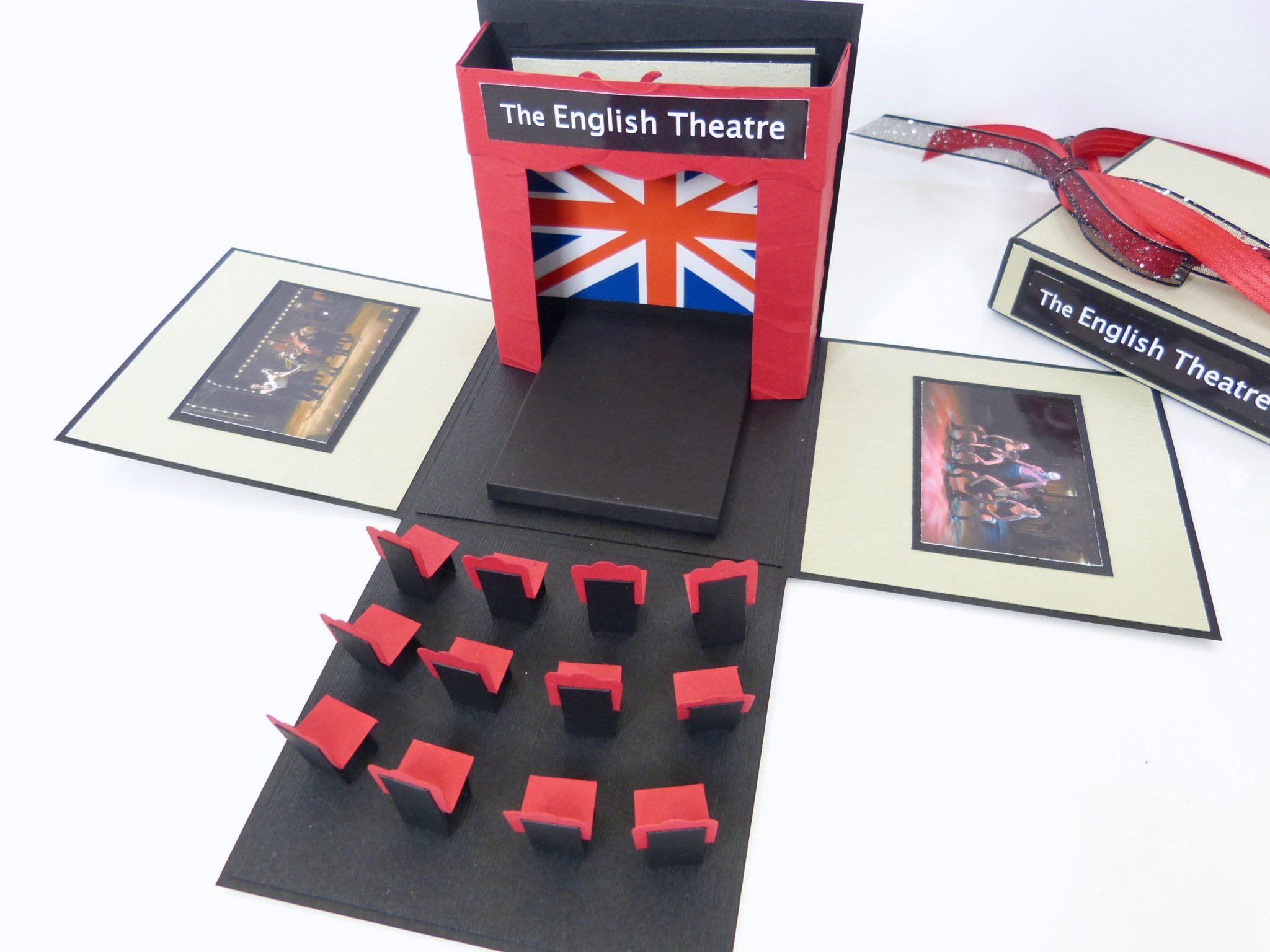 Vor einigen Tagen habe ich wieder einen besonderen Kundenauftrag bekommen: Eine Explosionsbox mit dem Thema English Theatre. Denn für das English Theatre und ein anschließendes Abendessen sollten Gutscheine verschenkt werden.