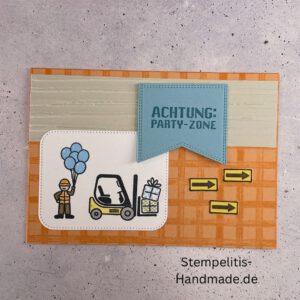 Grußkarte „Achtung Party-Zone – Baustelle“ – Handgemacht