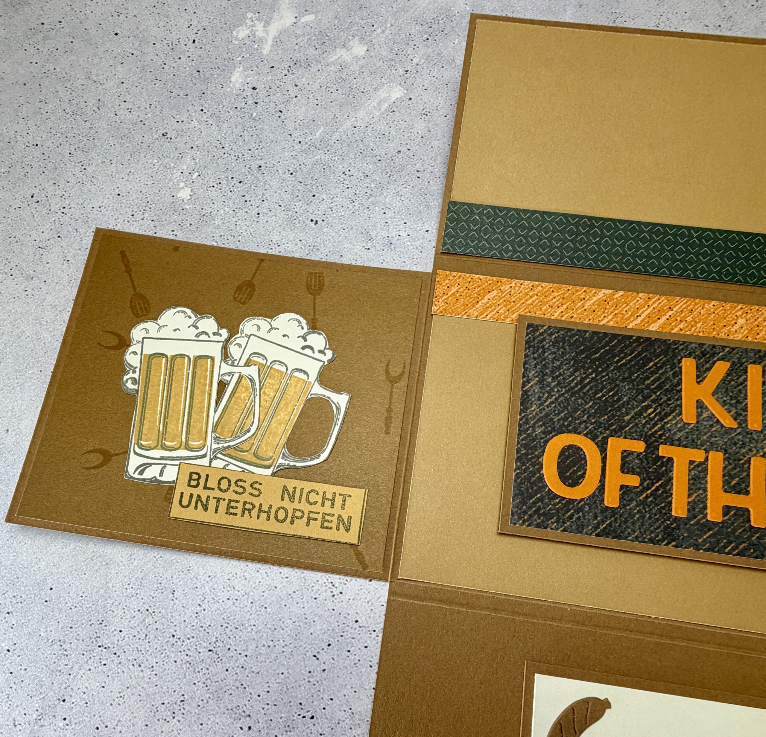Das Design bleibt bewusst ruhig und maskulin. Klare Linien, harmonische Farben und liebevolle Details rund um Grill und Bier sorgen für eine hochwertige Optik, die nicht laut sein muss, um aufzufallen. Statt überladenem Kitsch setzt diese Karte auf Stil mit einem feinen Augenzwinkern.