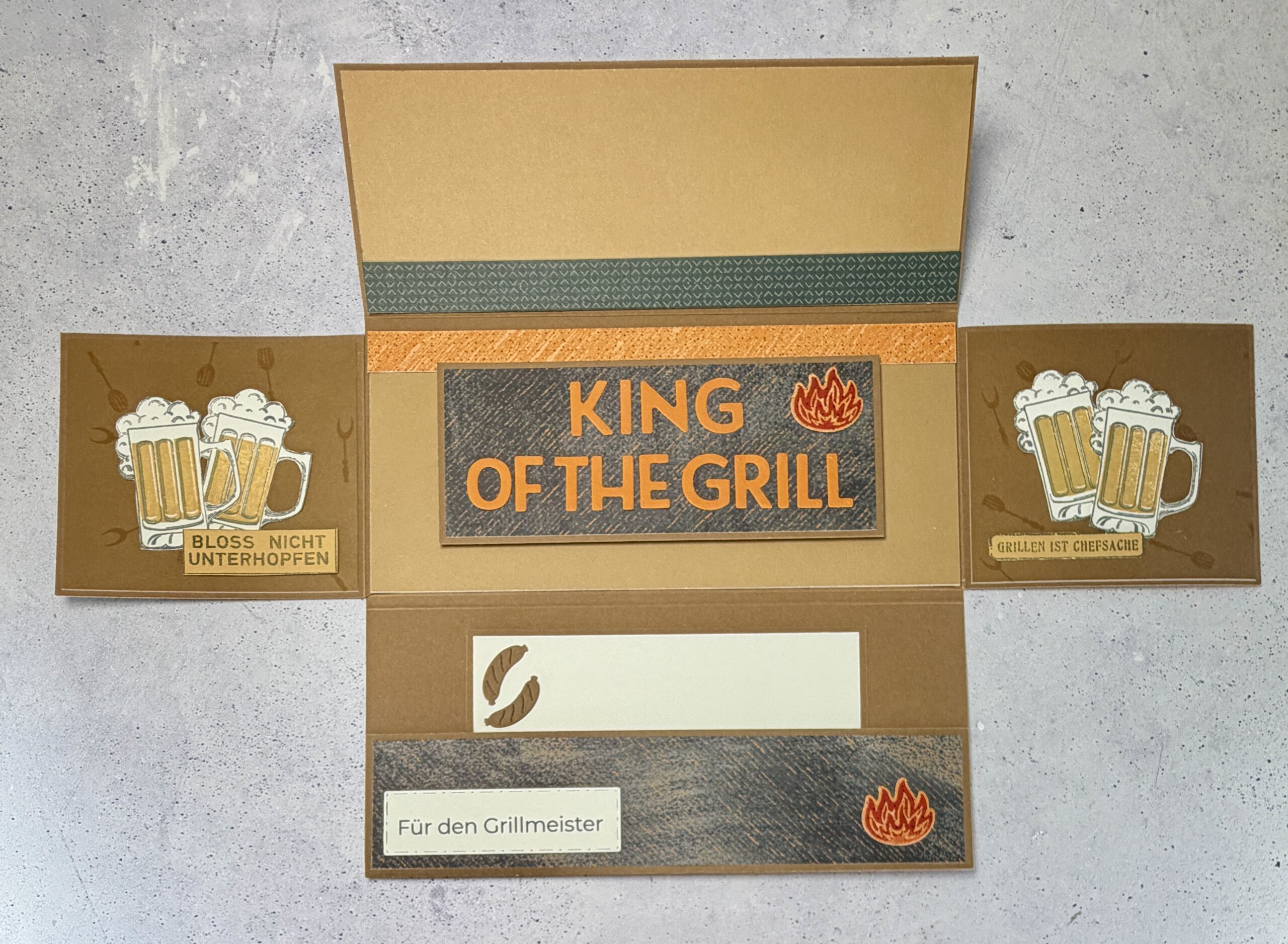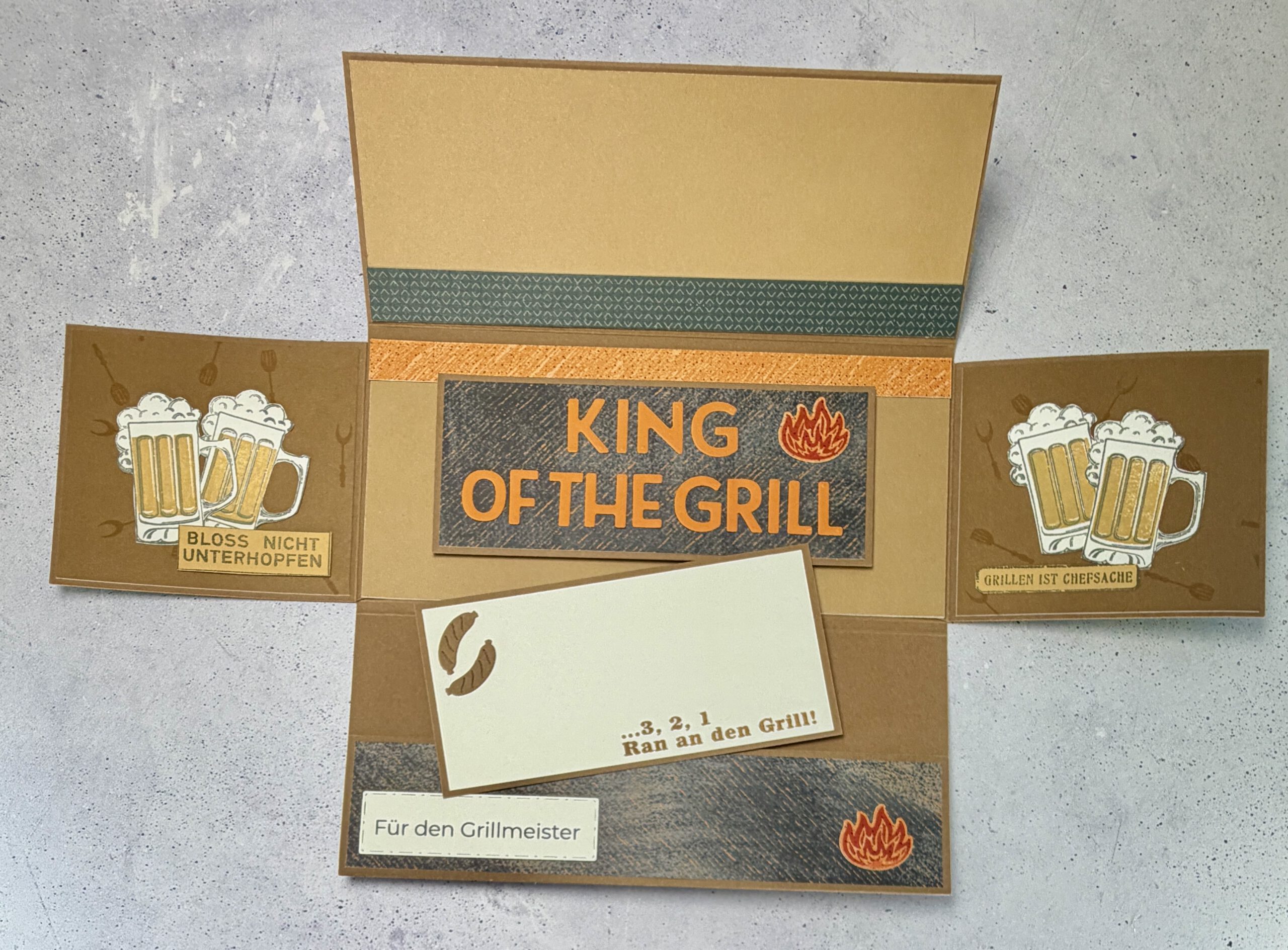 Diese handgemachte Aufklappkarte ist eine kleine Hommage an echte Grillmeister. An die, die wissen, wann die Glut perfekt ist, wann das erste Bier geöffnet wird und dass die besten Gespräche sowieso draußen stattfinden. Genau dafür ist diese Karte gemacht: für entspannte Momente, ehrlichen Humor und persönliche Worte.