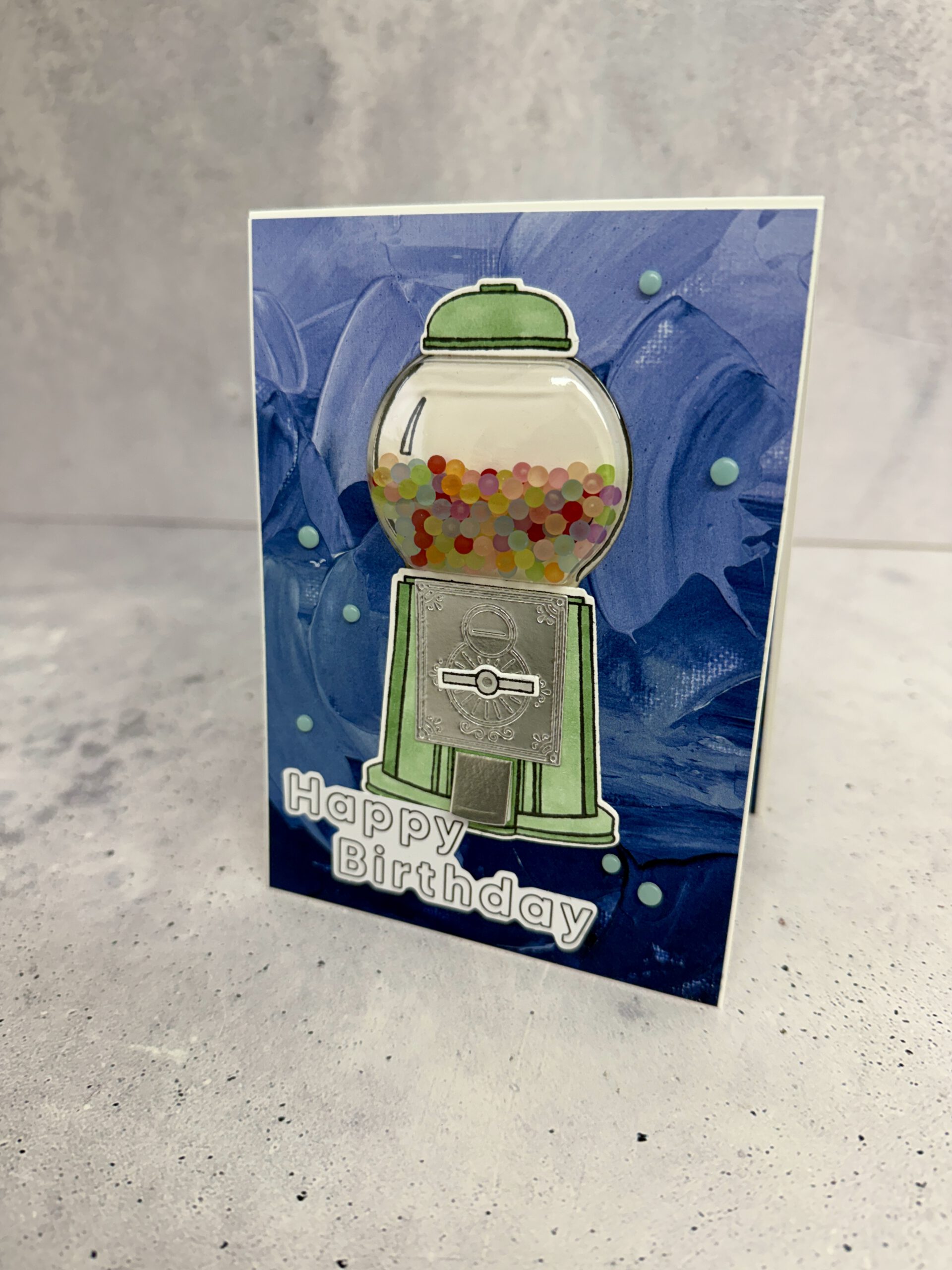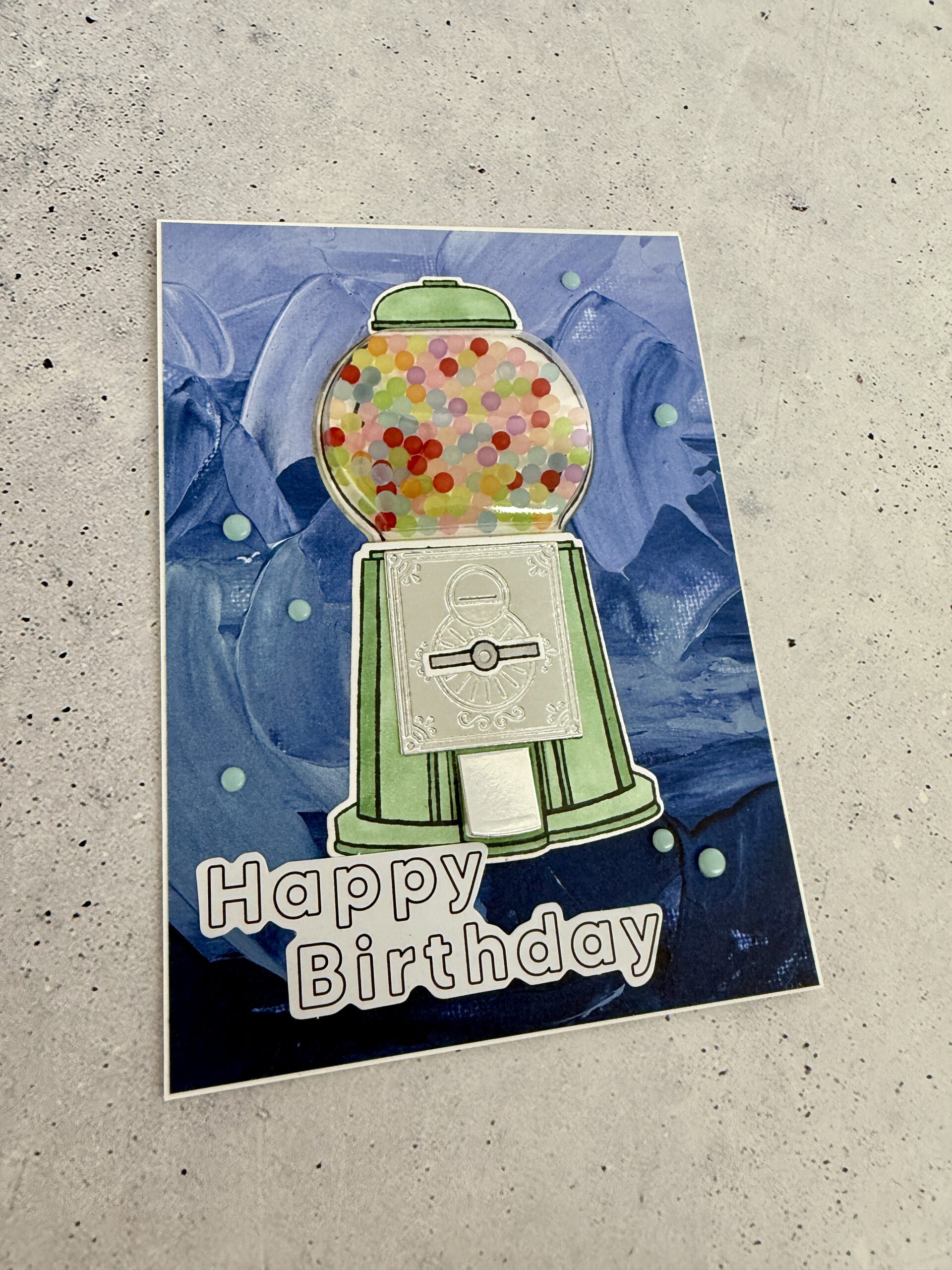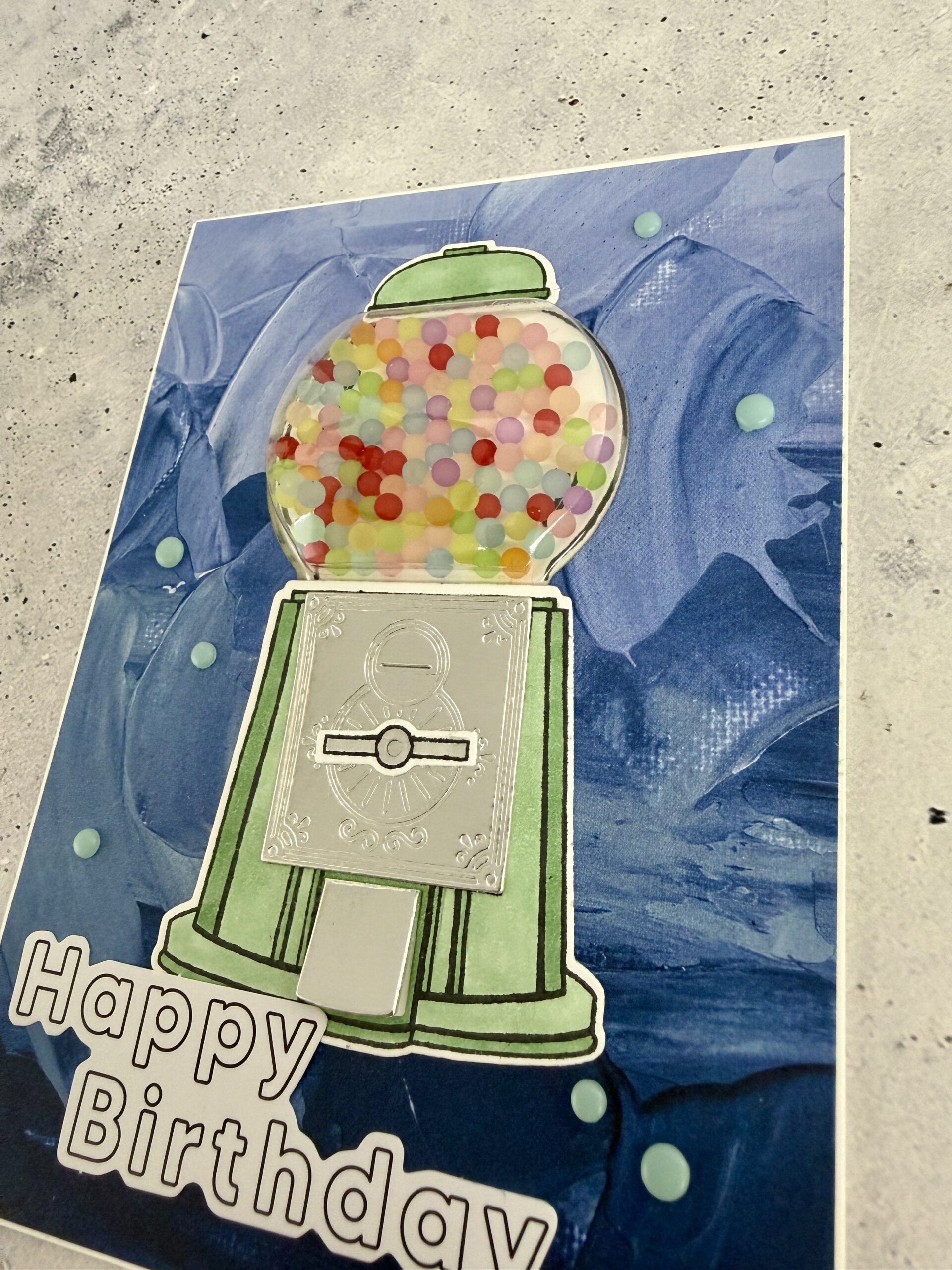 Happy Birthday handgemachte Karte mit Kaugummiautomat