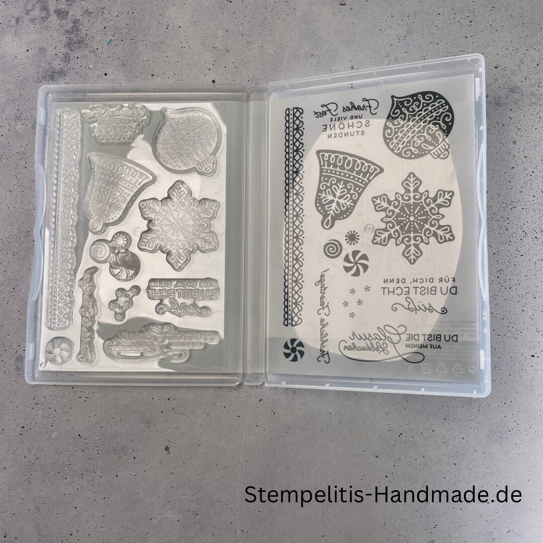 Gebrauchtes Stempelset Verzierte Lebkuchen: Ein Set aus 11 hochwertigen Klarsicht-Stempeln (Photopolymer), die ideal für Bastel- und Kreativprojekte geeignet sind.