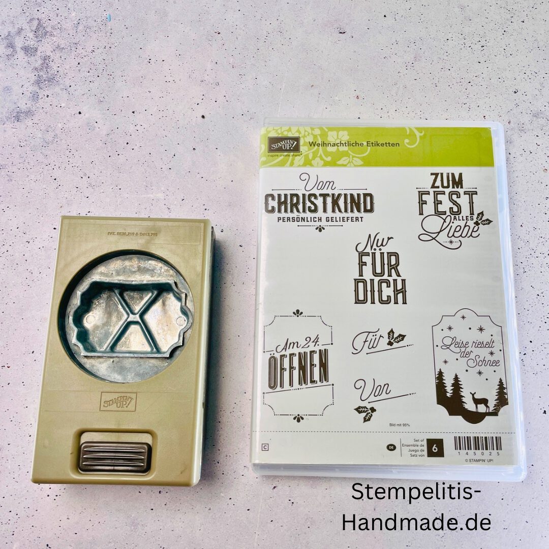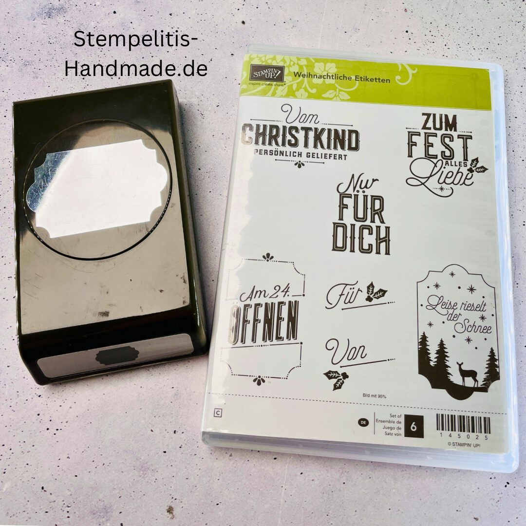 Weihnachtliche Etiktten – 6 gebrauchte Gummistempel von Stampin‘ Up!